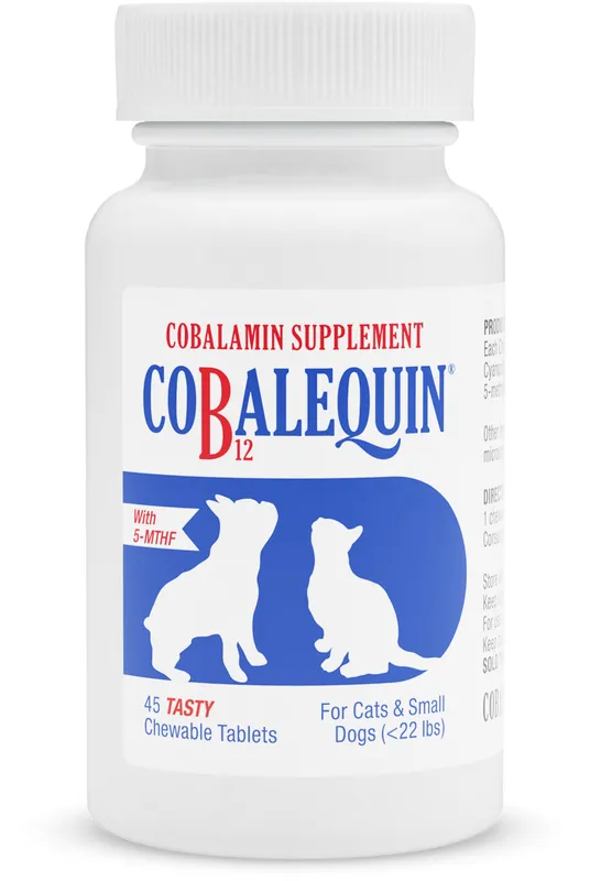- הצורה של ויטמין B12 הכלולה בתוסף היא בעלת זמינות ביולוגית גבוהה והוכחה במחקרים כתורמת להעלאת ריכוז של cobalamin בסרום בכלבים ובחתולים.