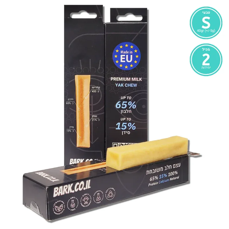 עצם מחלב יאק, עשויה 100% רכיבים טבעיים הכוללים חלב יאק ומעט מלח. ייצור עצמות היאק של BARK נעשה באירופה, תחת תקינה אירופאית, תוך שימוש בחומרי הגלם האיכותיים ביותר וללא שום חומרים משמרים.